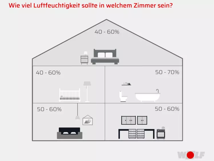 Während zu trockene Luft die Schleimhäute und Augen reizen kann, besteht bei zu hoher Feuchtigkeit das Risiko von Schimmelbildung und Bauschäden.