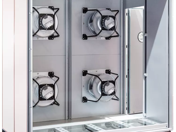 Der platzsparende Einbau einer EC-Ventilatorwand (Fan-Wall), also mehrerer kleiner parallel angeordneter EC-Ventilatoren, spart dabei nicht nur Energie, sondern sorgt zudem für einen leisen Betrieb. Sollte einer der kleinen Ventilatoren ausfallen, gleichen die anderen seine Leistung aus, was insgesamt die Betriebssicherheit einer RLT-Anlage deutlich erhöht. Außerdem hat ein Ventilatortausch den positiven Effekt, dass bei direktgetriebenen EC-Ventilatoren ohne Riemen kein Abrieb anfällt und das Lüftungsgerät und damit auch die Zuluft sauber bleibt.