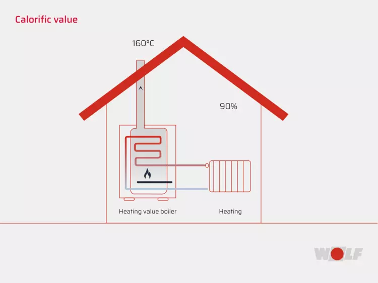 In a conventional boiler, only the net calorific value of the respective fuel is used, regardless of the source material. This applies to both old constant temperature systems and low temperature boilers.