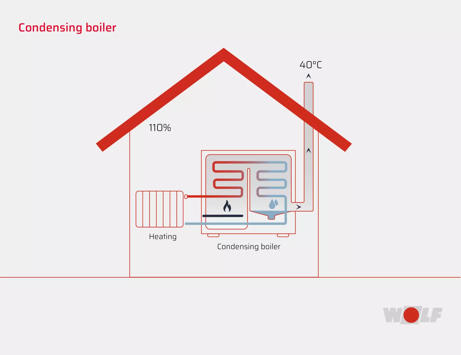 The graphics show the difference between non-condensing and condensing boilers.