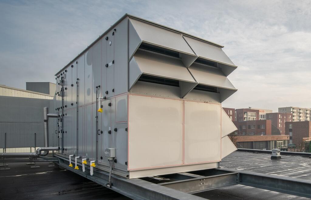 In line with the principle of sustainability, it was important to them that the units were energy-efficient and durable. The ‘green’ WOLF KG Flex units have an air flow rate of between 16,500 and 27,000 m³/h. This makes them significantly larger than their predecessors, meaning that one ventilation unit had to be designed as an outdoor unit. The units are equipped with a cross-flow heat exchanger with an efficiency of around 75%. A structural reduction in external pressure reduces the power consumption of the free-running EC fans and the units operate very quietly. The ventilation units' housings are designed in TB2/T2 and L1