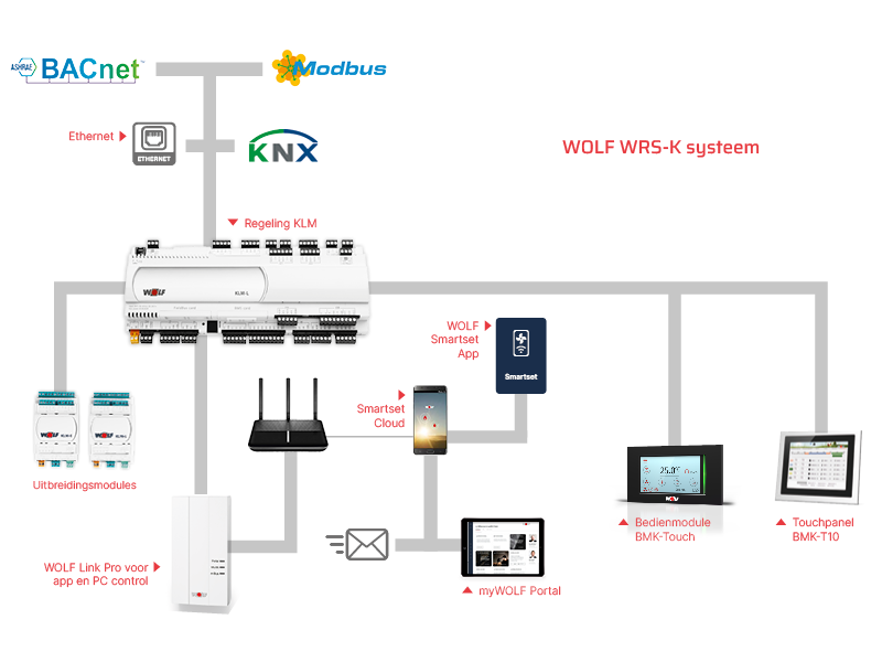 De luchtbehandelingsoplossingen van WOLF worden aangestuurd door de WRS-K regeling van WOLF. Ontwikkeld voor bedieningscomfort, individuele configuratie en het vinden van een balans tussen optimale en energiezuinige werking van uw systeem. De WRS-K communiceert bovendien met het bestaande gebouwbeheersysteem.